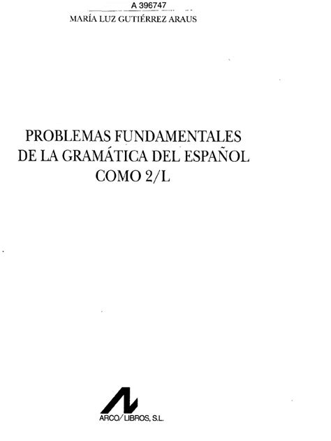 Read Online PROBLEMAS FUNDAMENTALES DE LA GRAMATICA DEL ESPAOL COMO 2L PDF BOOK Doc